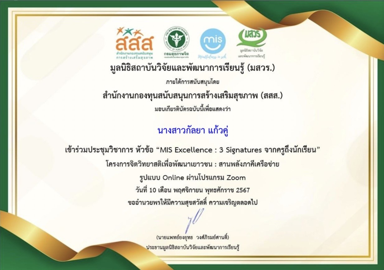 ชื่อผลงาน : ประชุมวิชาการ หัวข้อ "MIS Excellence : 3 Signatures จากครูถึงนักเรียน"