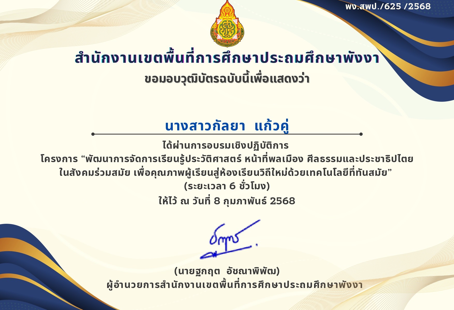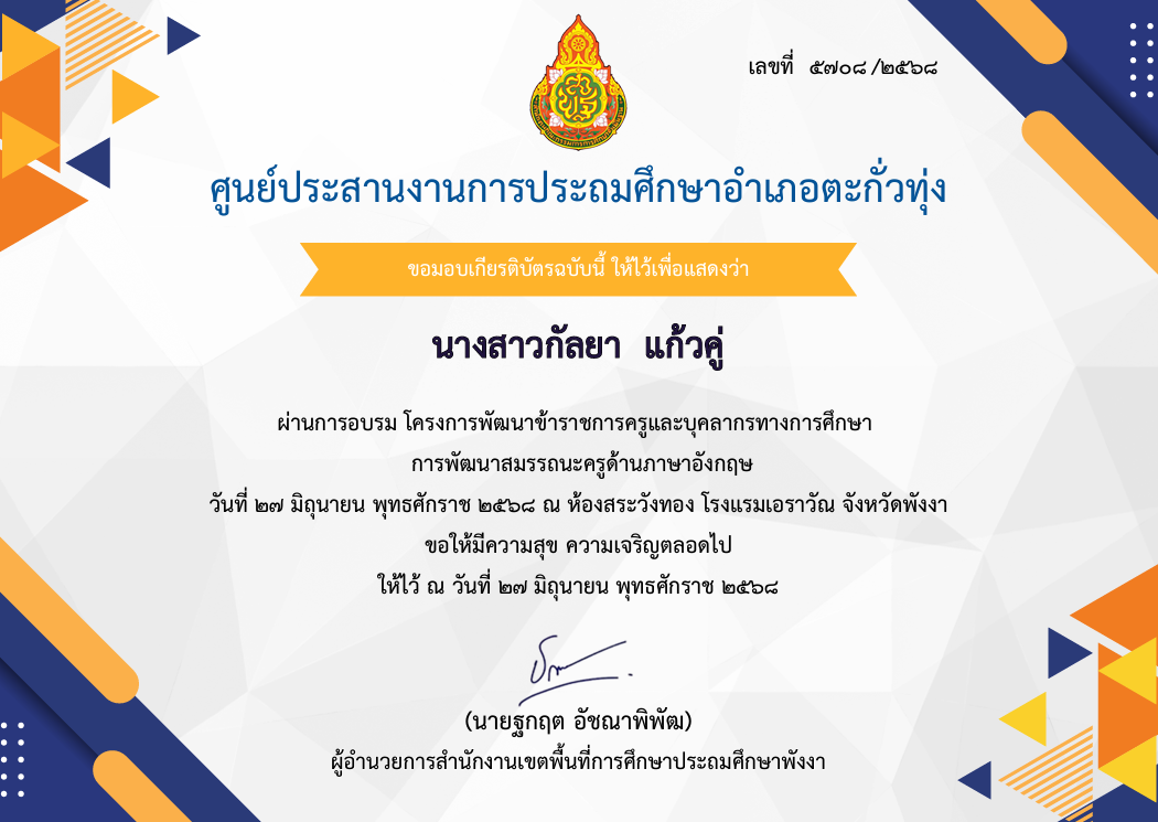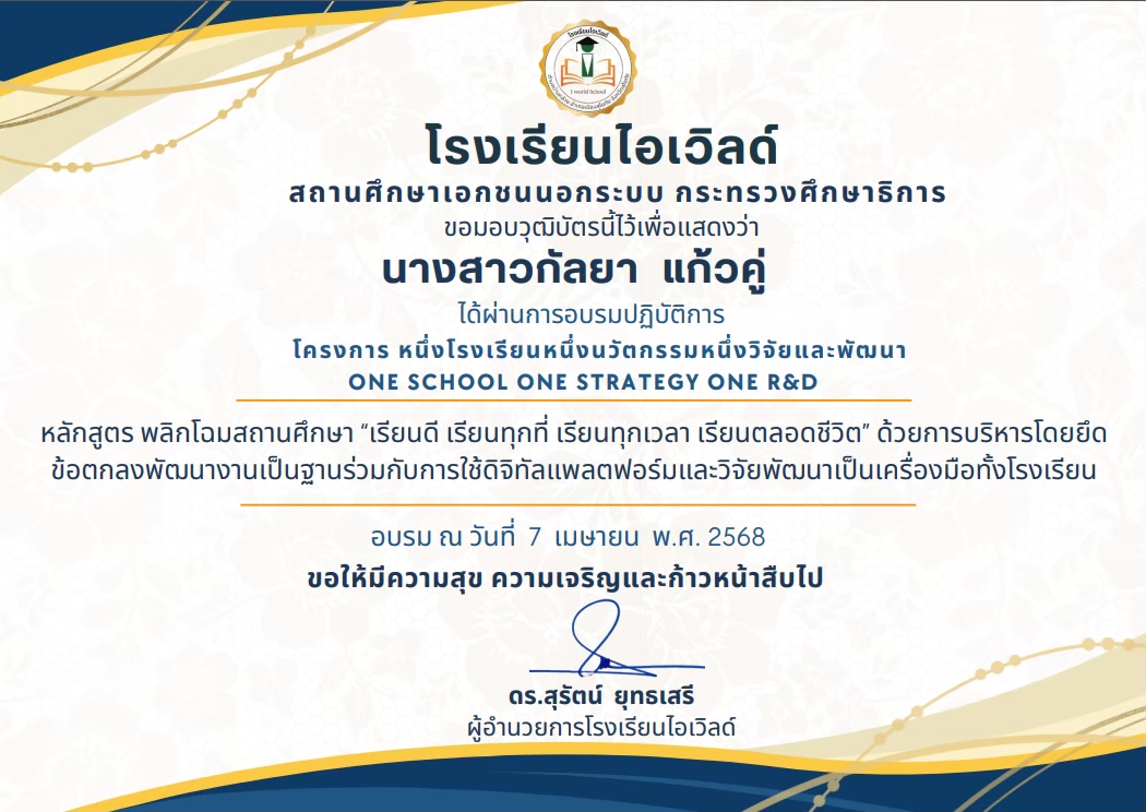ผ่านการอบรมพัฒนาความรู้ด้านการเงินผ่านระบบ e-Learning หลักสูตร OBEC - Money Coach สร้างความยั่งยืนด้วยความรู้ด้านการเงิน |